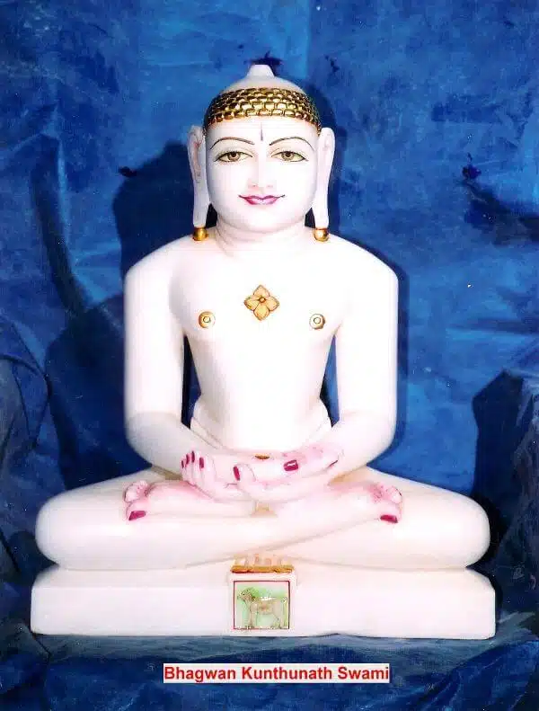 Kunthunatha was born in Champa from the royal couple posing King Shursena and Queen Shridevi. He admired him for his intelligence as well as for his moral principle. After reigning justly, Kunthunatha decided to embrace an ascetic form of life, abdicate his kingship in order to follow the path of search for Truth. He performed severe austerity, he obtained Kevala Jnana – he who knows everything without any external help.